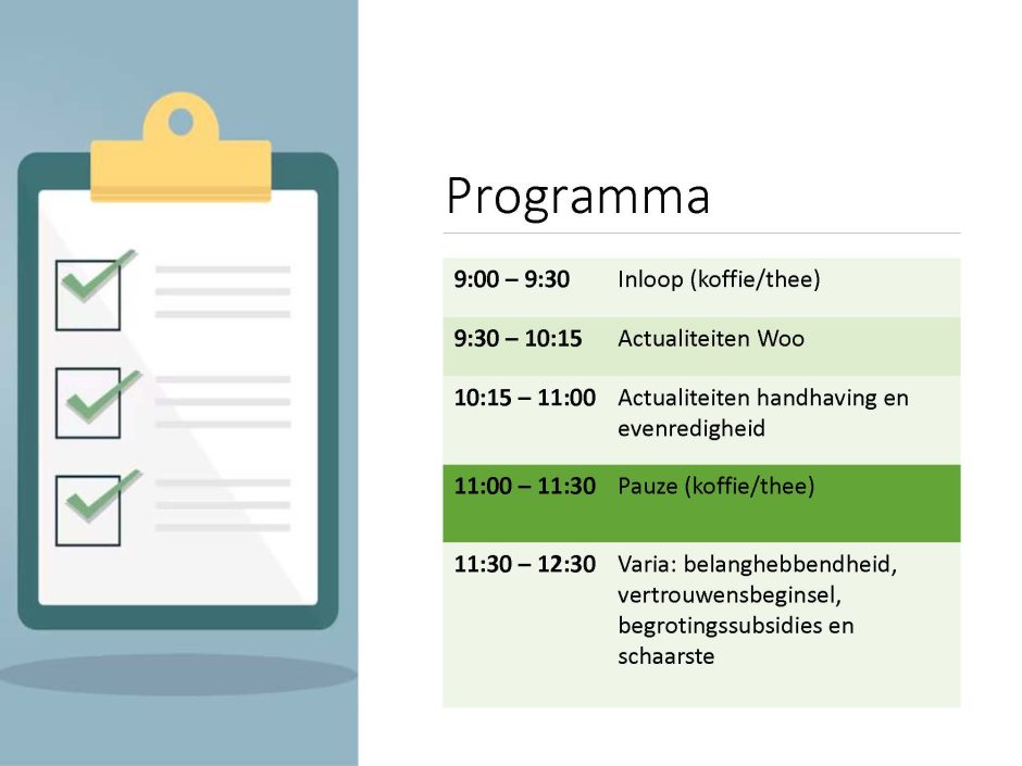Vorige week vond wederom een actualiteitencollege plaats bij de gemeente Maastricht. Dit keer praatten mijn collega’s Ralf Vlecken, Noa van Eijs, Emiel de Bruijne en Rob, Schobben, alle vier werkzaam in onze praktijkgroep Overheid en Non-profit, de medewerkers bij over onderwerpen zoals Woo, Handhaving en Evenredigheid, Belanghebbendheid, Vertrouwensbeginsel, Begrotingssubsidie en schaarste. Het was een zeer geslaagde interactieve ochtend.